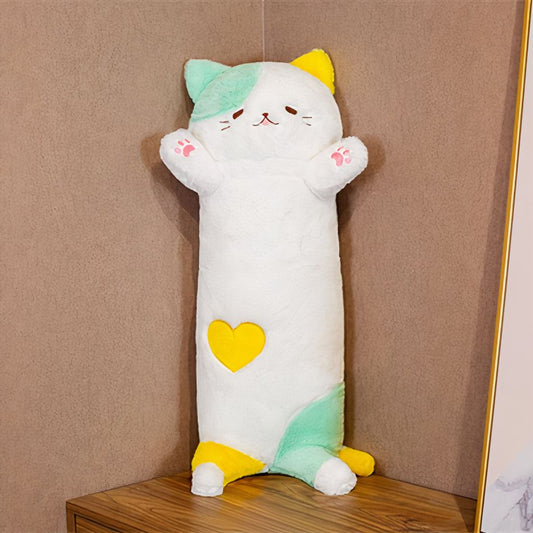 Peluche chat long doux oreiller câlin pour sieste cosy